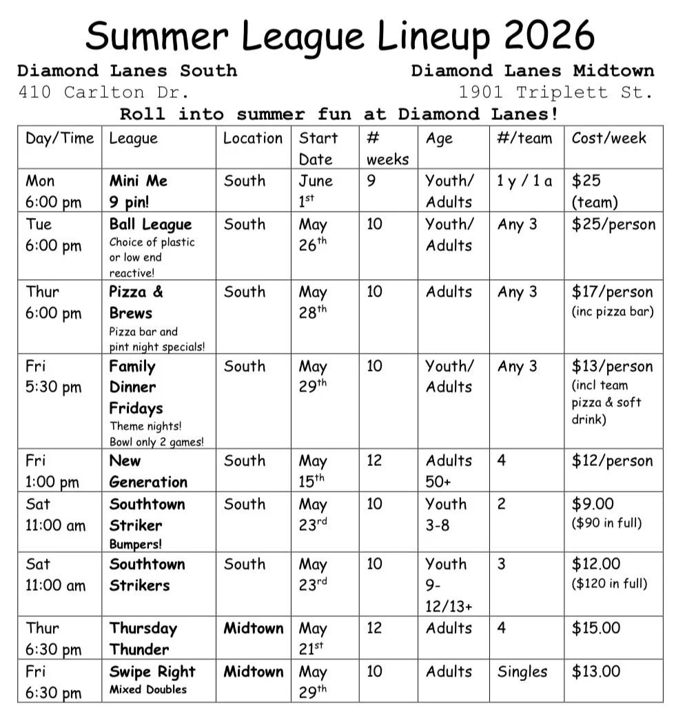 Open lanes available daily during springbreak!